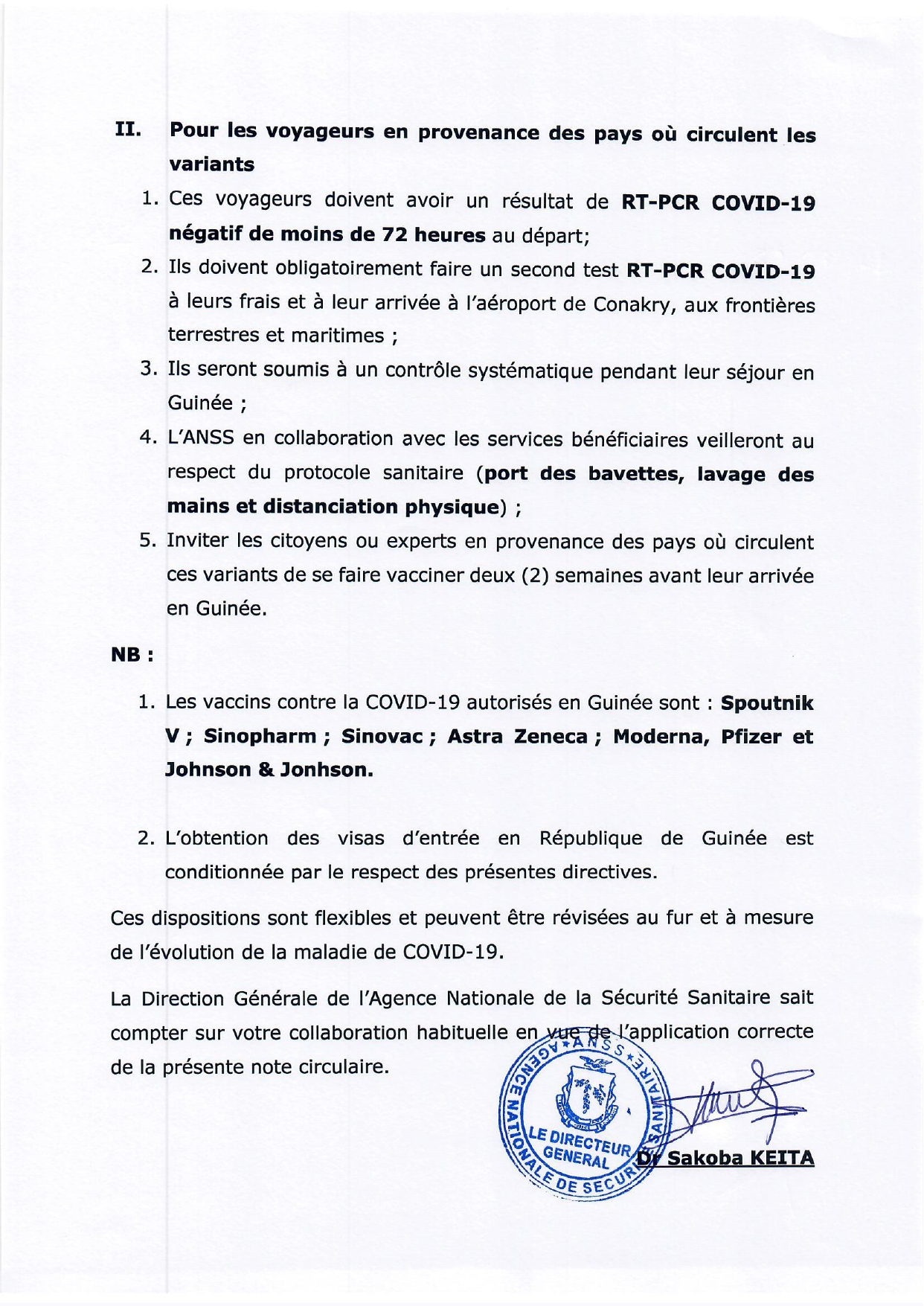 Face à l’évolution épidémiologiques de la Covid-19, la Guinée à travers l’ANSS a durci les mesures d’entrée et de sortie du territoire national