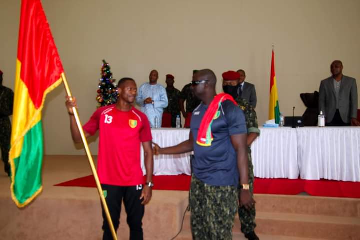 Devant le Président et le premier ministre Mohamed Béavogui ainsi que le ministre des sports Lansana Béa Diallo, le capitaine du jour a reçu le tricolore guinéen. Le Syli a reçu tous les encouragements et le soutien du gouvernement guinéen qui dit s’attendre à un parcours honorable de l’équipe de Kaba Diawara à la coupe d’Afrique.