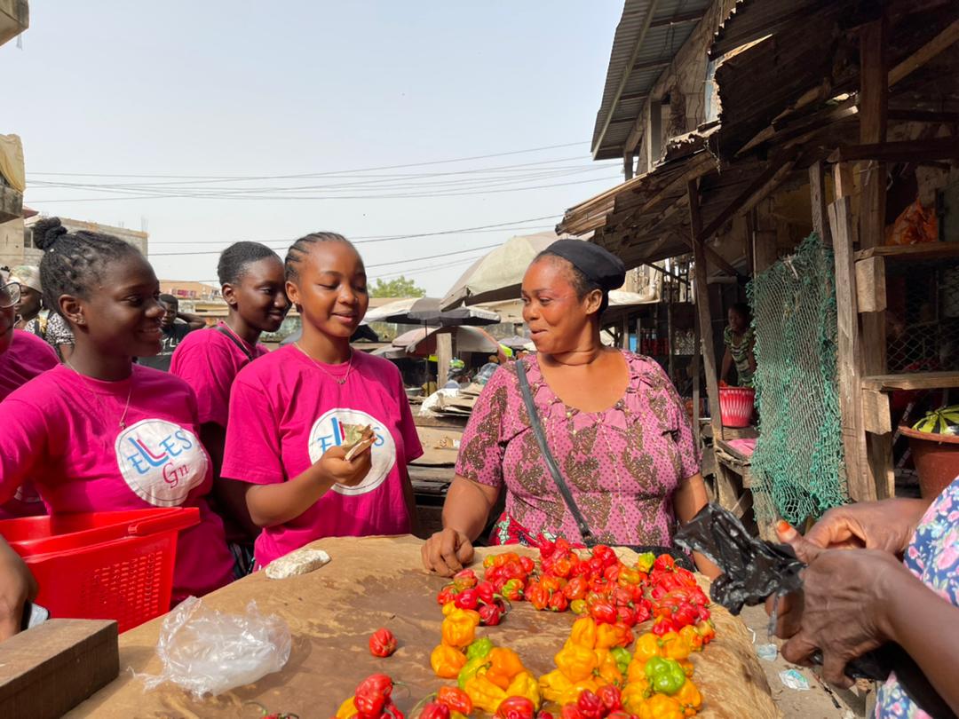 Selon la présidente de l’ONG, pour ce premier contact, à l’occasion de la journée internationale des droits de la femme, »Elles » décide de rencontrer les femmes au foyer pour les soutenir financièrement dans leur achat au marché de Madina Wambélé, une manière pour ces filles de dénoncer la cherté de la vie.