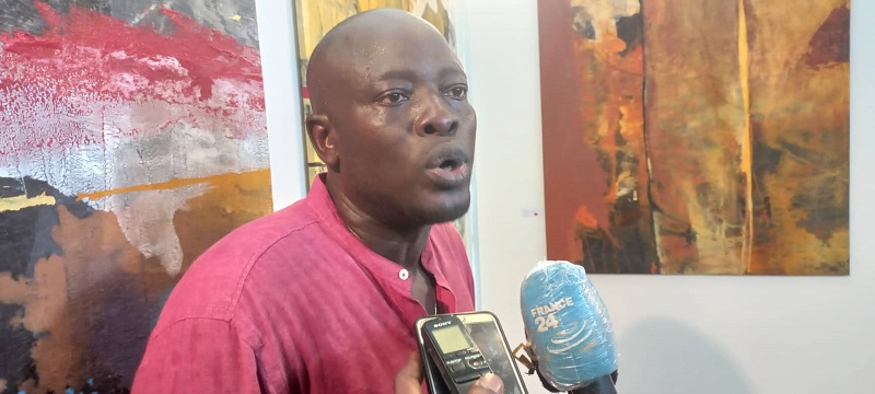 Francis Nicaise Tchiakpe, artiste peintre béninois : « dans mon travail artistique, je parle de l’humanité, je parle de paix, je parle de l’environnement dans lequel on se trouve, du monde d’aujourd’hui. A chaque œuvre d’art il y a derrière des messages de paix, des messages de bonté. Ça fait plus de 20 ans que je fais de l’art, pour moi c’est un moyen de m’exprimer. Je suis artiste tout court. Mon lien artistique est l’abstraction ; l’abstraction parce que je parle beaucoup de l’homme, l’humanité, l’homme en quête de liberté d’une liberté, l’homme en quête de paix, de l’amour… Les avantages du métier d’artiste c’est une œuvre d’esprit, ça nous permet de nourrir notre esprit, ça nous permet de créer, ça nous permet de diffuser des messages artistiques. »