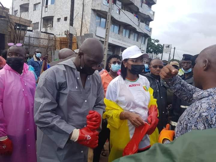 A YImbaya, dans la commune de Matoto, la patronne du département de la Communaition s’est confondue aux autres citoyens pour ébouer les routes. Pelle à la main, les peids dans les bottes, Pricemou a assuré le nettoyage de la capitale avec les cadres de son Ministère. Images…