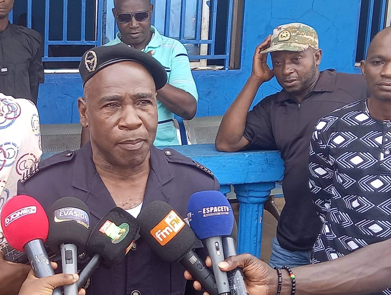 « Nous avons convié la presse pour présenter des présumées voleuses d’habits et des téléphones portables ainsi que des modes opératoires dans les taxis. Elles déplacent un taxi, quand une passagère s’embarque, à mi-chemin, le conducteur dit que son véhicule est en panne. Il se trouve qu’ils ont condamné une des portières. Pendant que la passagère cherche à descendre, c’est en ce moment que celle qui se trouve à côté soutire le portefeuille ou le téléphone. La première a été prise en possession de cinq téléphones, 4 androids et un téléphone simple. Il y a une victime qui a répondu à notre appel, elle a expliqué exactement ce que je viens de dire.