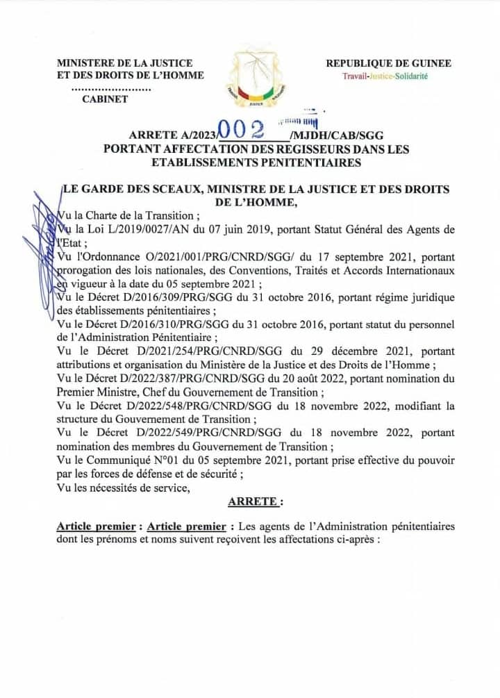 L’article Justice/ Les établissements pénitentiaires changent de régisseurs est apparu en premier sur Guinee7.com.