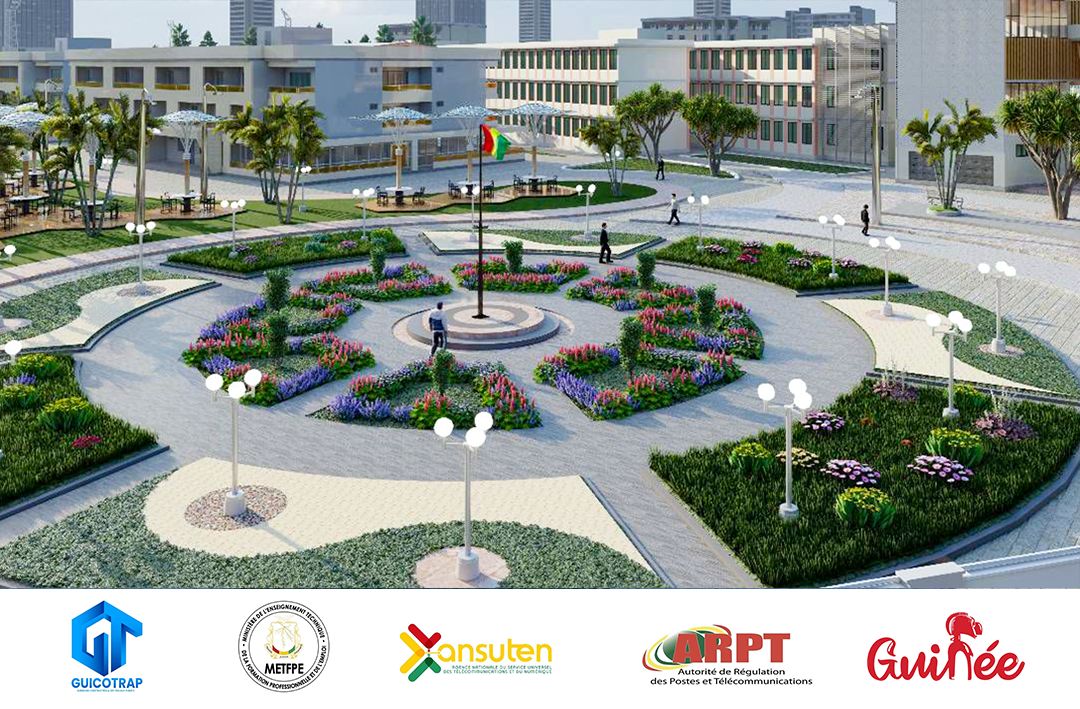 Le village numérique de Guinée qui sera bâti sur une superficie de 46 707,12 m² sera constitué de quatre (4) blocs pédagogiques, Un (1) bloc administratif, Une (1) résidence pour étudiants formée de deux bâtiments, Un (1) amphithéâtre, Une (1) Bibliothèque, Une (1) résidence de professeurs, Un (1) centre sportif, des constructions secondaires, des aménagements extérieurs et des Voiries et Réseaux Divers (VRD) pour un délai d’exécution de douze (12) mois.